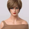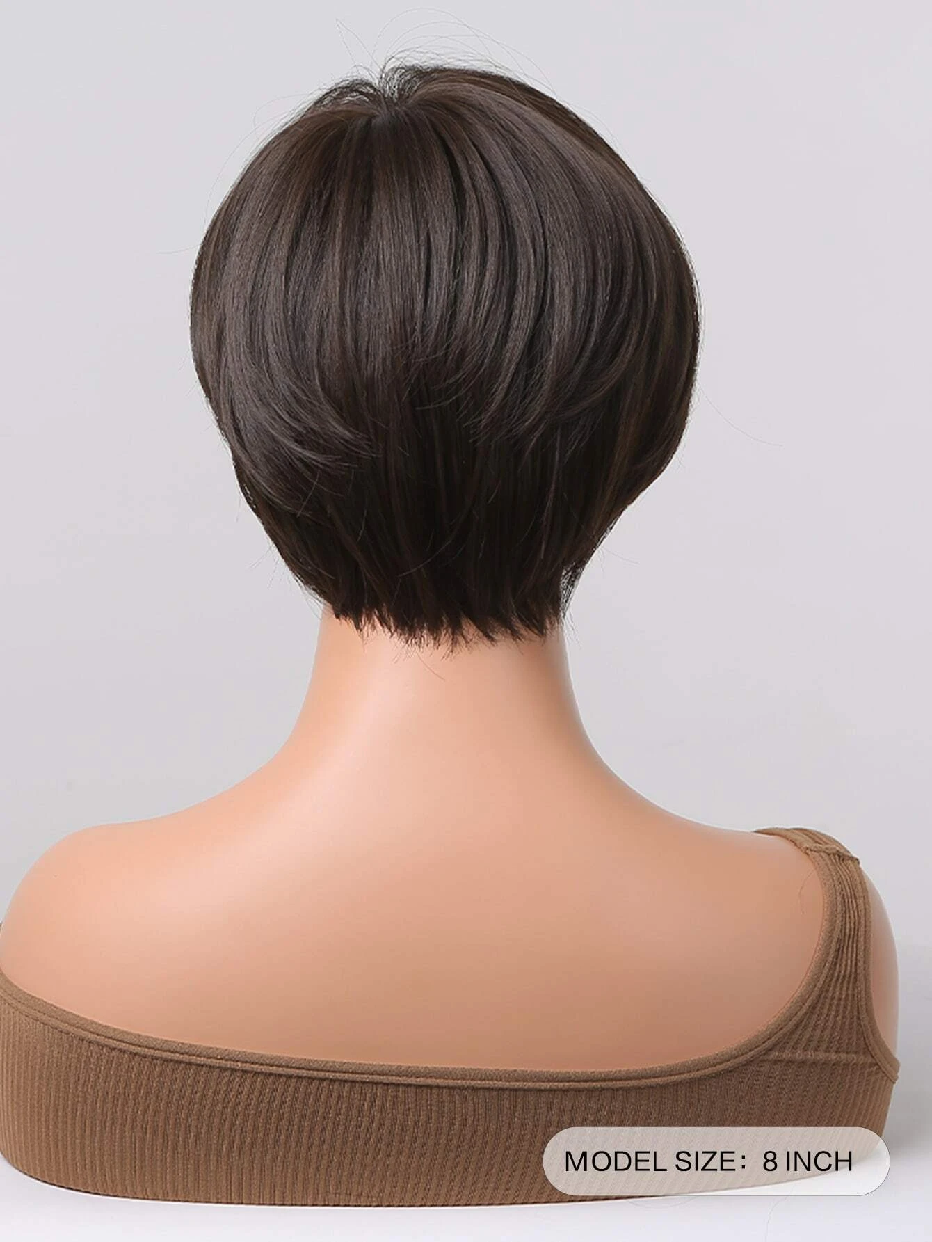 Quality hair wig. Brown wig with bangs. Wig length is 25cm.
