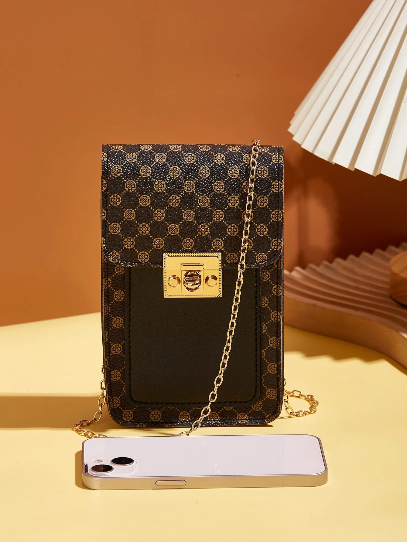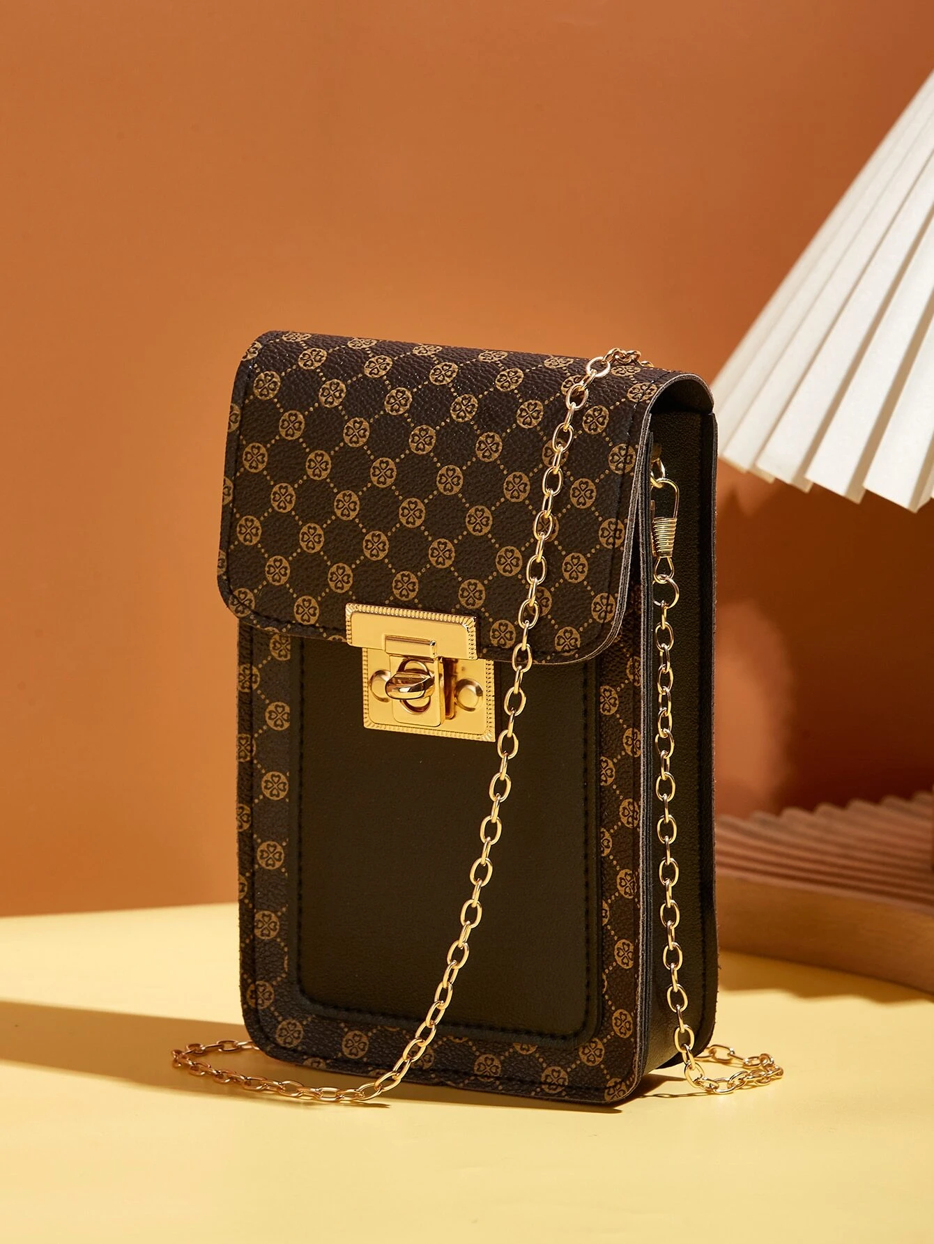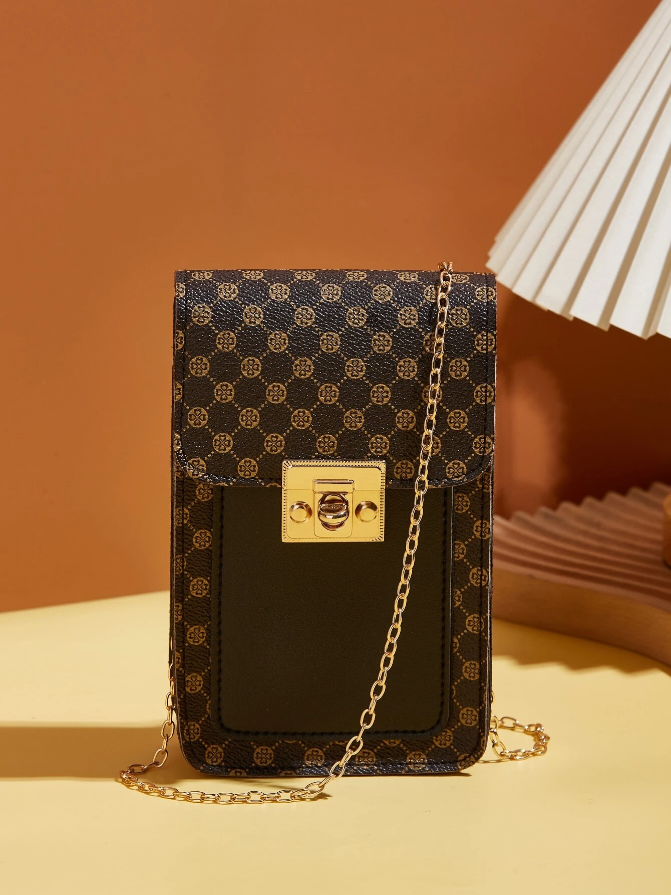 Gold & brown stylish handbag. Bag height is 18cm. Bag length is 11cm.