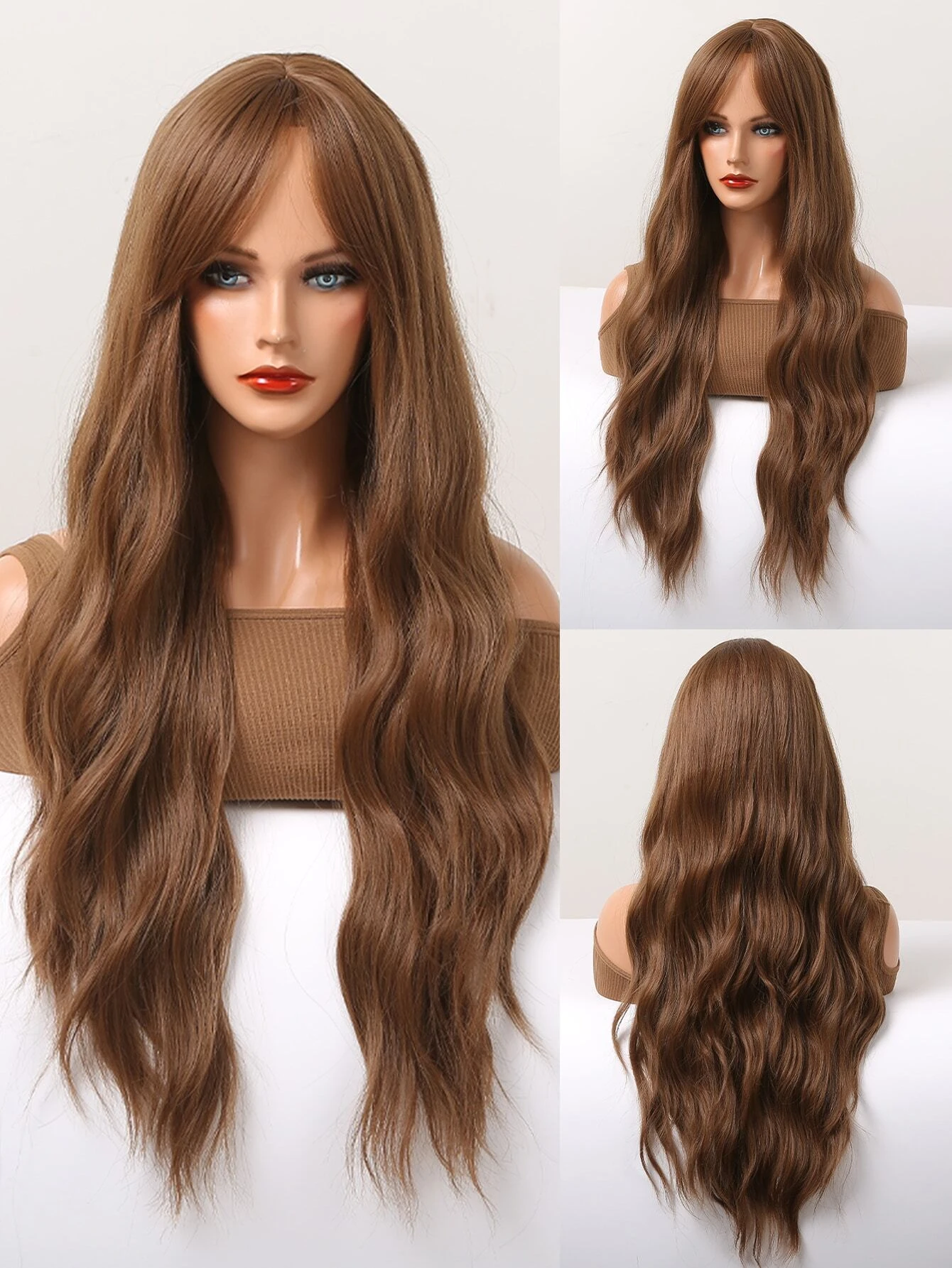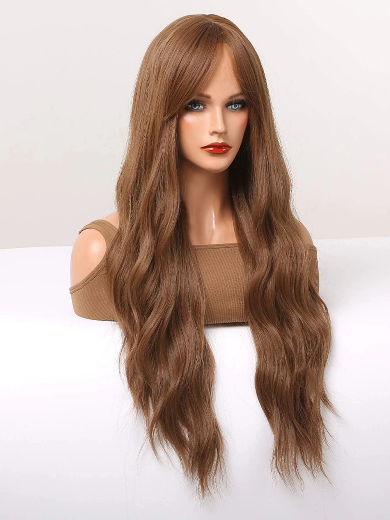 Quality hair wig. Brown wig with bangs. Wig length is 70cm.