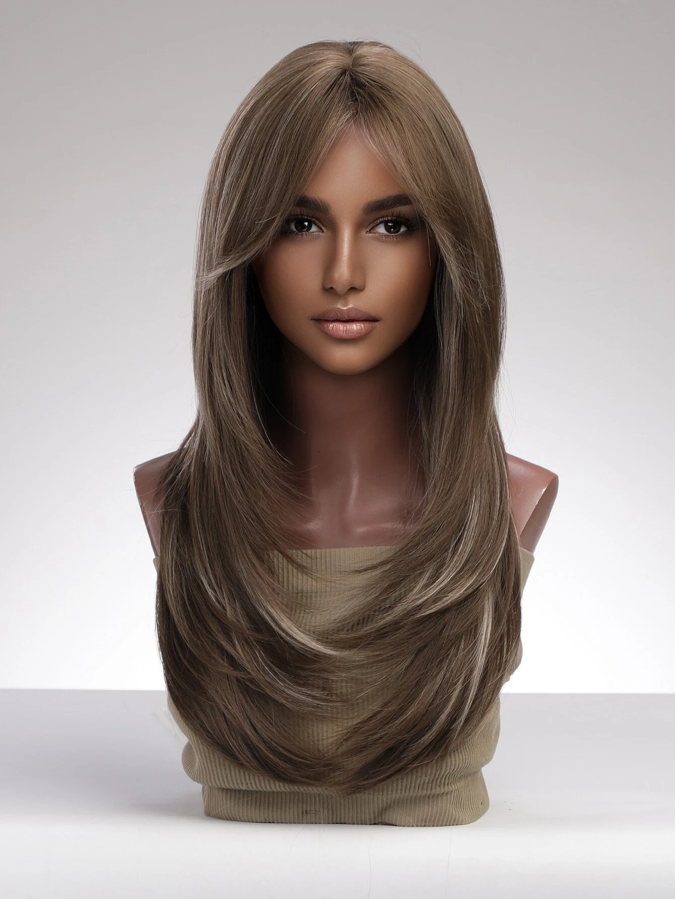Quality hair wig. Brown wig with bangs. Wig length is 55cm.